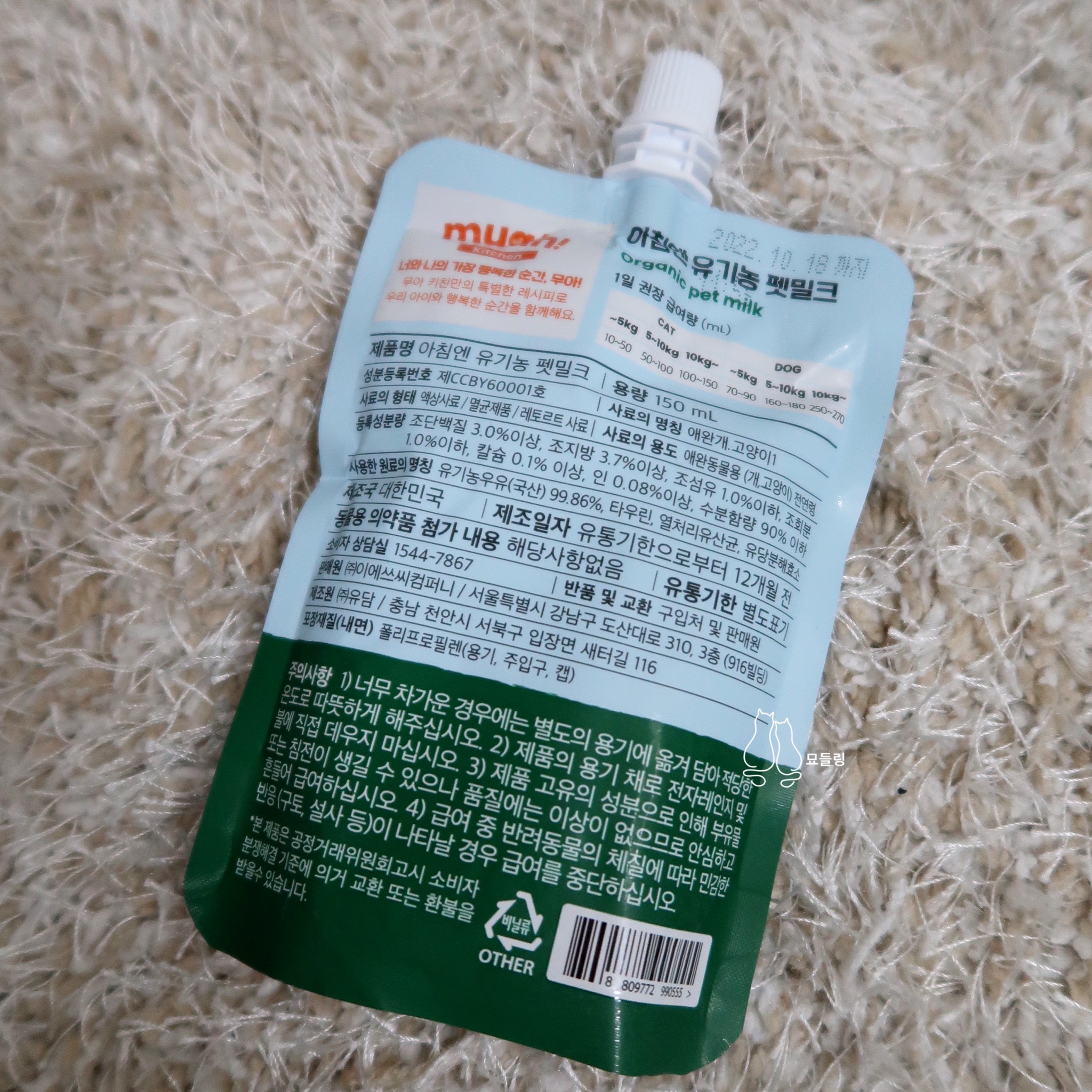 그중에서도 아침엔 유기농 펫밀크라는 제품을