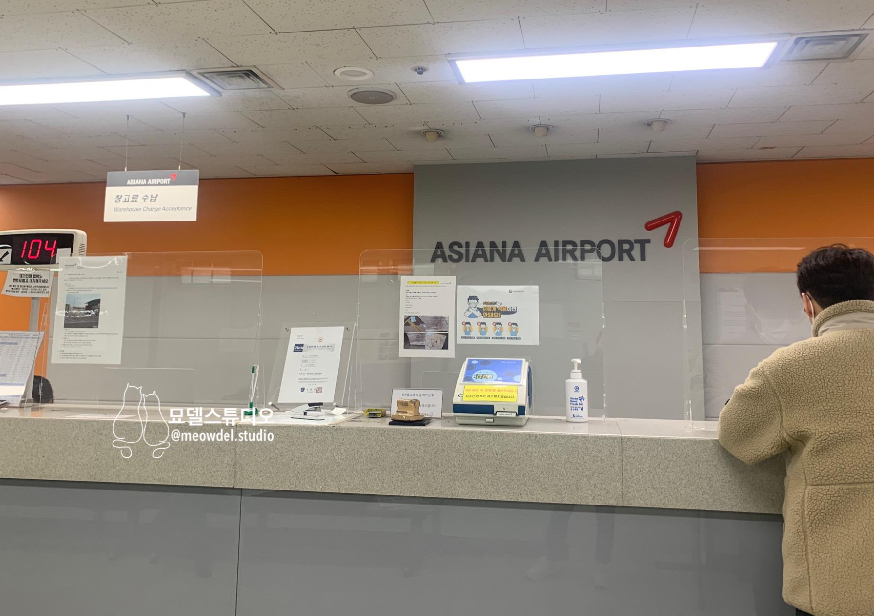 제일 먼저 가셔야 하는 곳은 인천공항의 아시아나 에어포트라는 곳인데, 2층 사무실로 올라가셔서 신분증과 운송 번호를 알려주시면 고양이와 함께 도착한 운송장을 줍니다.