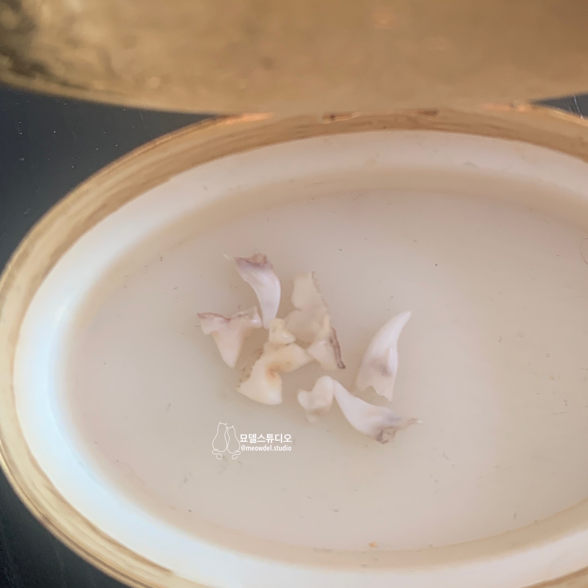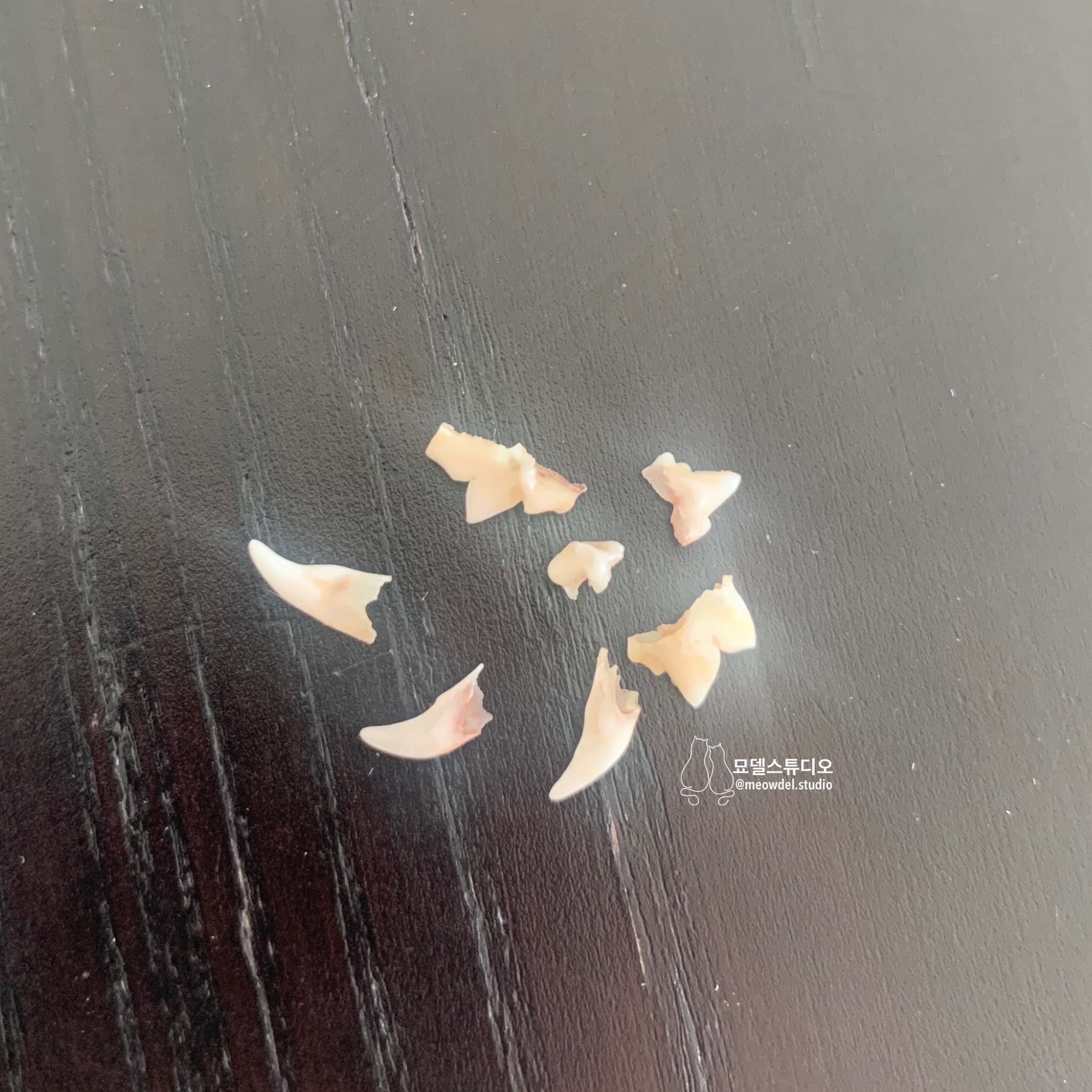 고양이는 유치가 26개이기 때문에 한 마리 당 26개의 이빨이 나오는데, 전 고양이를 몇 마리나 키우면서 고작 이만큼 건졌어요 ㅋㅋ 혹시라도 고양이 이빨 빠진 걸 발간하셨다면 행운의 상징이라고 하니 잘 보관해두세요. :)