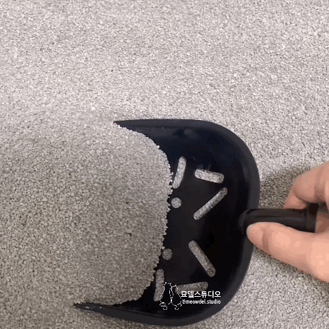 많이 굵거나 얇은 입자가 아니고 딱 적당해요. 1-3mm의 입자로 고양이 배변 본능을 자극해 준다고 합니다 ㅋㅋ