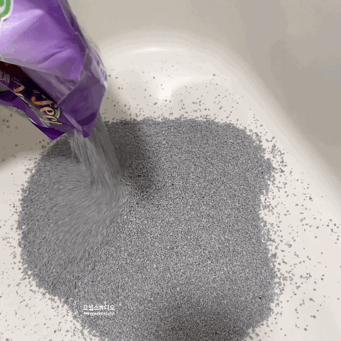 원더 샌드 모래를 사용해보기 위해 이렇게 부어봤는데 역시 먼지는 날리지 않았어요. 물론 모래는 좀 더 길게 사용해봐야 확실히 알 수 있겠지만 일단 첫인상으로는 완전 합격입니다.