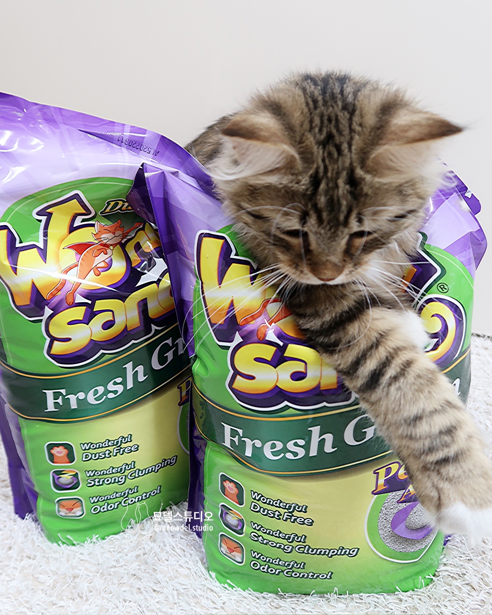 하지만 원더 샌드는 기초 수분을 유지하면서 끝까지 응고력과 흡수력을 유지해 준다는 것이 큰 장점이에요. 당연히 건조해지지 않으니 먼지도 날리지 않고요!